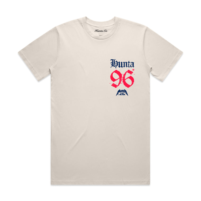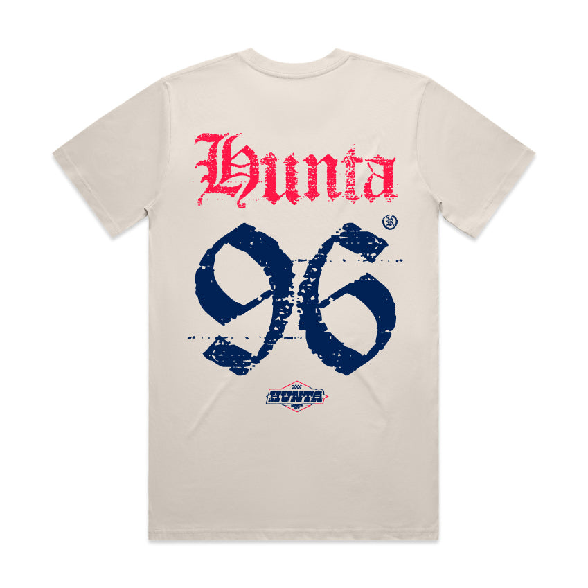 Rep the Hunta Co “96” Tee, a crisp, vintage-inspired design featuring bold distressed typography on both the front and back. The front showcases a compact “Hunta 96” graphic, while the back turns up the impact with oversized lettering and a race-inspired badge for an authentic moto feel.